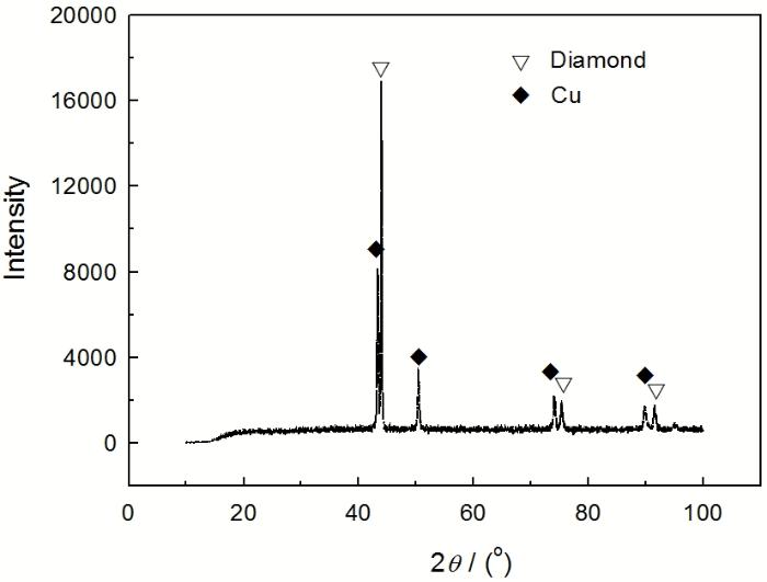 碳纳米管的热导率高达3000 Wm-1K-1, 但因其具有各向异性而不适合用作热管理材料。金刚石也具有较高的热导率, 约为1200-2000 Wm-1K-1, 没有各向异性, 因此可用做热管理复合材料的弥散相。铜具有较高的热导率, 非常适合用作热管理材料的基体相[2]。铜/金刚石复合材料在理论上具有较高的热导率, 称为第三代先进电子封装材料。