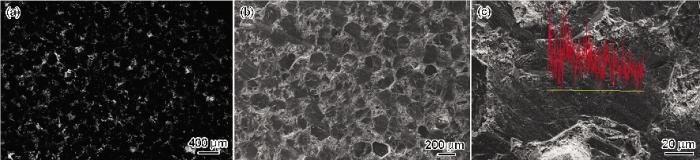Fig.3 Surface microstructure of the copper/diamond composites (a) backscattered electron photograph, (b) SEM photograph, and (c) element line scan