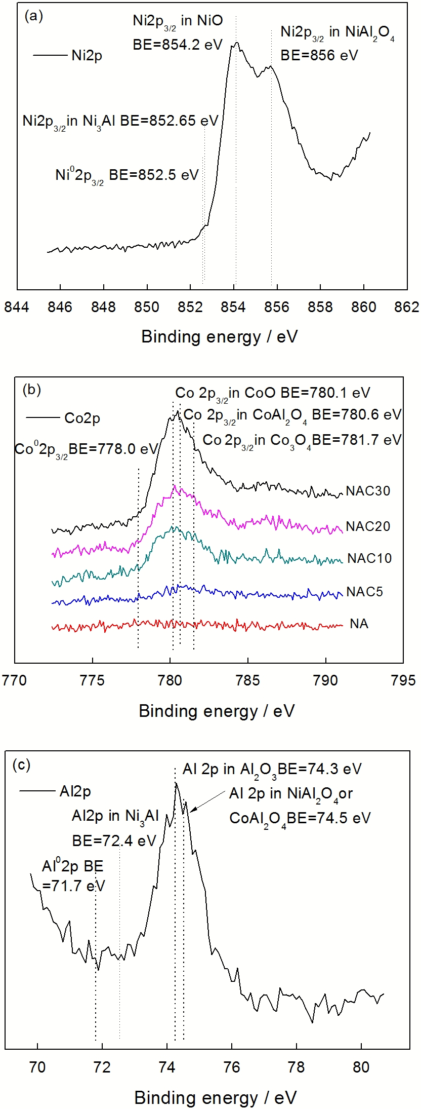 | Ni0 | Ni3Al | NiO | NiAl2O4 | Co0 | CoO | CoAl2O4 | Co3O4 | Al0 | Ni3Al | Al2O3 | CoAl2O4 | NiAl2O4 | |||