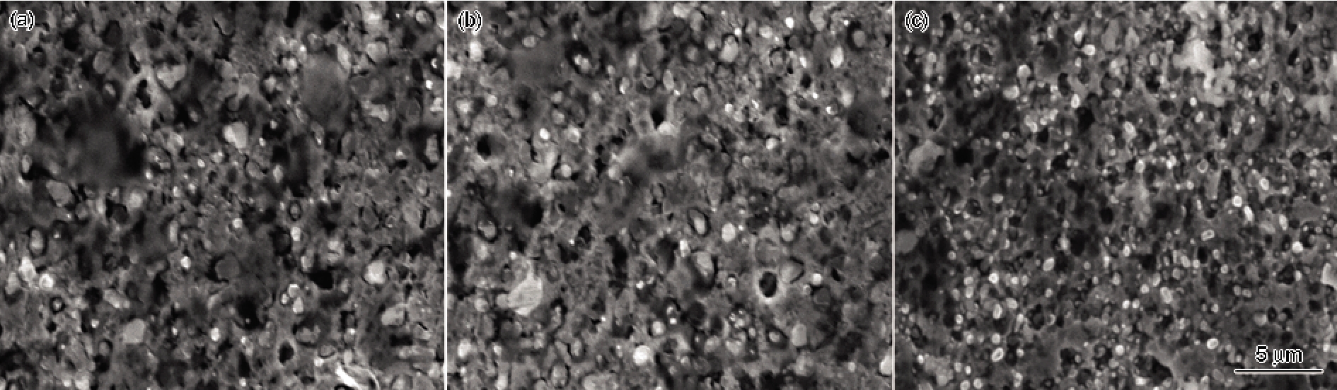 将球磨后的粉末装入石墨模具(内径24 mm)中, 以8 MPa的压力预压后在ZT-45-20Y型真空热压炉中烧结成型。烧结工艺: 升温速率10℃/min, 各试样的烧结温度均为1200℃, 烧结压力20 MPa, 保温保压时间60 min, 保温保压后随炉自热冷却。