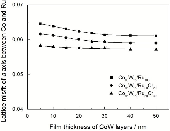 Fig.6 Lattice misfit of a-axis between Co-W and Ru-Cr films