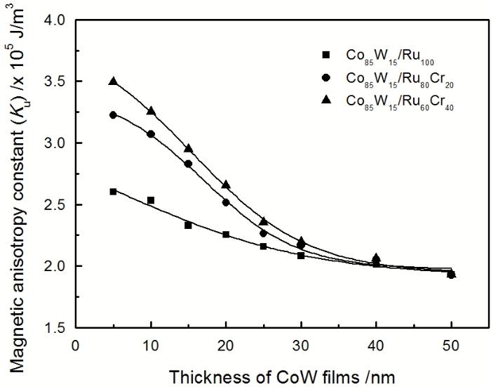 图8 Co85W15/ Ru100-xCrx (x=0, 20, 40)薄膜的磁各向异性常数Ku