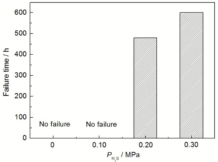 Fig.6 Variation of failure time of 13Cr stainless steel with increasing H2S partial pressure