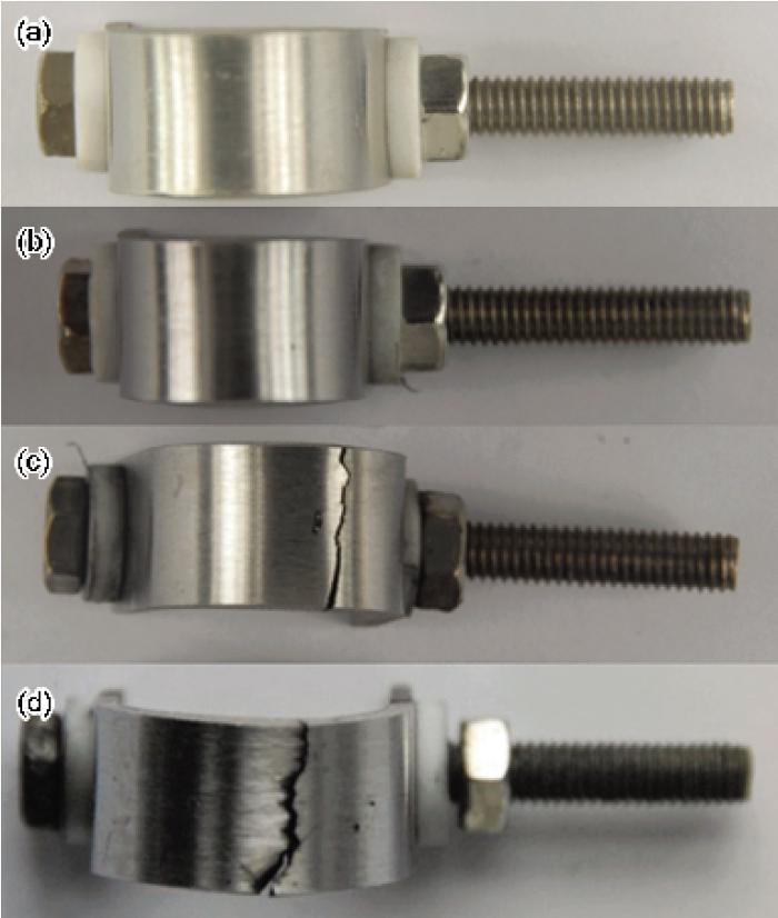 Fig.5 Macroscopic morphologies of 13Cr stainless steel U-bent specimen after immersion test:(a)