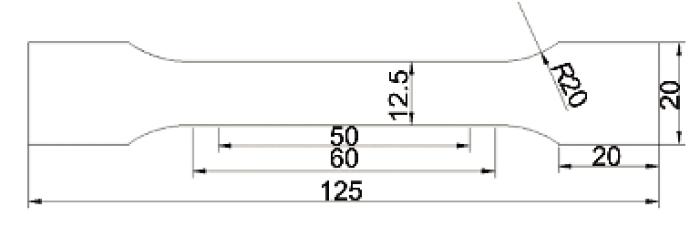 Fig.1 Schematic of alloy sheet sample for tensile test (unit: mm)