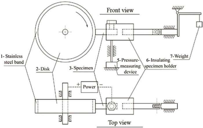采用冷压烧结粉末冶金法制备铜钛硅碳石墨合金材料, 通过摩擦磨损试验机和扫描电子显微镜(SEM)等手段研究了铜钛硅碳石墨合金材料的磨损性能和磨损机制, 以及速度和载荷对滑块摩擦磨损性能的影响。结果表明, 在速度较大或载荷较小的条件下磨损量随着滑移距离呈现线性增长, 在试验参数范围内磨损量整体上随着滑移距离的变化曲线有一定的规律性。微观分析表明, 钛硅碳和石墨零星分布在磨损表面极大地提高了铜基材料的耐磨性能。磨损的主要形式, 是黏着磨损、磨粒磨损和氧化磨损。