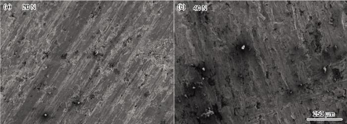 用HITSCHI S-2360N型扫描电子显微镜(SEM)以及Quanta 200 FEG型带有能谱分析技术(EDS)的场发射环境扫描电子显微镜(ESEM)观察分析磨损表面形貌及其磨损机制。