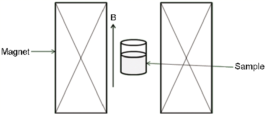 在浆料中加入适量的引发剂和催化剂, 混合均匀后放置到6T的纵向磁场中(图1)。通过控制引发剂和催化剂的添加量, 在磁场中的聚合时间大约为15 min。凝胶聚合完成后, 对样品进行干燥处理, 在600℃空气气氛中进行脱脂处理2 h, 然后在0.1 MPa的N2气氛保护下进行埋粉烧结, 粉末床是纯氮化硼粉末。烧结温度分别为1700、1750、1800℃, 保温时间为2 h; 在1750℃分别烧结4 h、6 h。