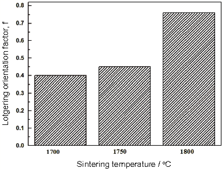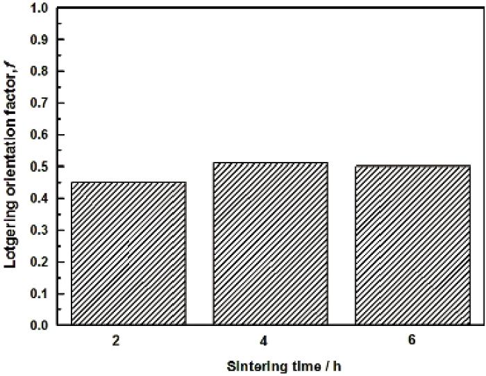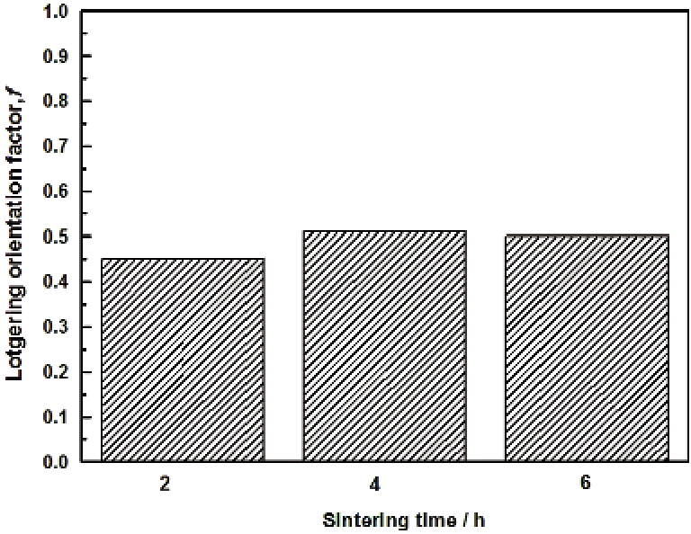 图9 在6T磁场中成型在1750℃烧结不同时间样品的取向因子