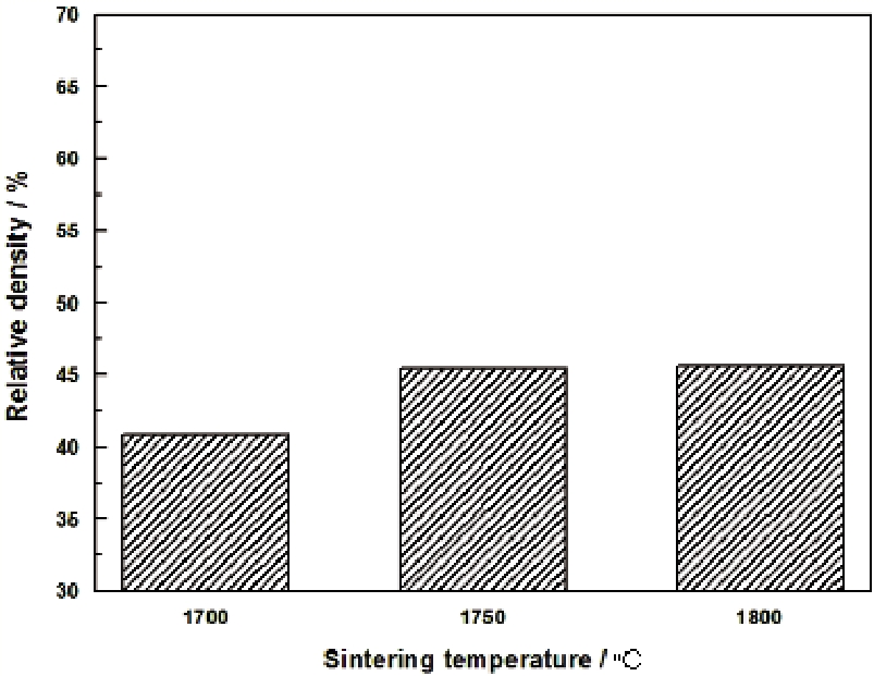 Fig.6 Relative density of the samples obtained at different temperatures for 2 h