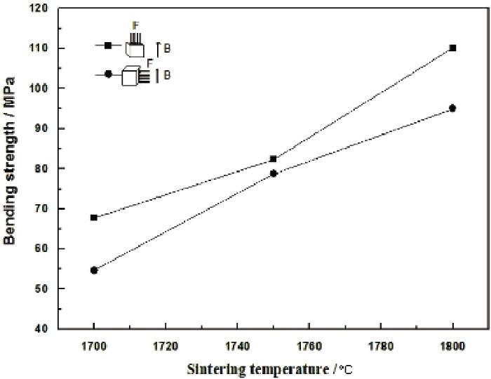 Fig.7 Bending strength of the samples obtained at different temperatures for 2 h