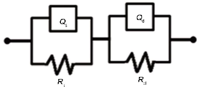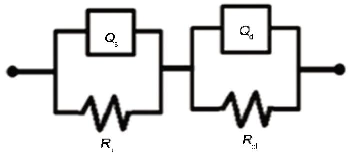 根据EIS谱特征,考虑到土壤介质本身的电容性质,采用如图2所示的等效电路模型分析EIS数据。其中,Rs为土壤电阻,Qs和Qdl分别为土壤电容和双电层电容,Rct为电荷传递电阻。由于土壤是高阻抗介质,弥散效应较强,因此采用常相位角元件代替电容。常相位角元件的阻抗为[14]: