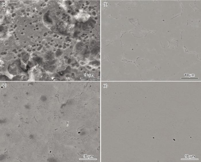 电化学实验在Parstat 2273电化学工作站上进行,电解池为三电极体系,饱和KCl甘汞电极 (SCE) 为参比电极,辅助电极为Pt片。线性极化在相对开路电位 (OCP)±20 mV内进行,扫描速率为0.166 mV/s。动电位极化从相对开路电位-250 mV始,至腐蚀电流密度突然增大时止,扫描速率为1 mV/s。电化学阻抗测量在OCP下进行,测量频率范围为100 kHz~10 mHz,交流激励信号为10 mV,实验结果用ZSimpWin软件进行处理。文中所有电位均相对于SCE。
