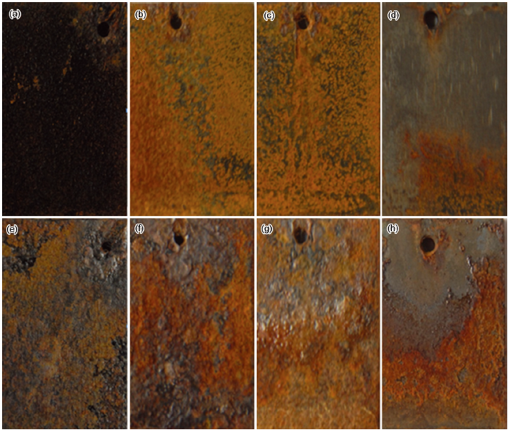 (3) Q420钢的锈层疏松多孔,主要组成为Fe2O3和Fe3O4,对基体不能起到良好的保护作用;含Cr钢锈层分为内外两层,外锈层组成为Fe2O3和Fe3O4,内锈层组成为α-FeOOH,Fe2O3和Fe3O4。Cr促进了内锈层中α-FeOOH的形成,提高了锈层的稳定性和致密性,材料耐蚀性能增强。