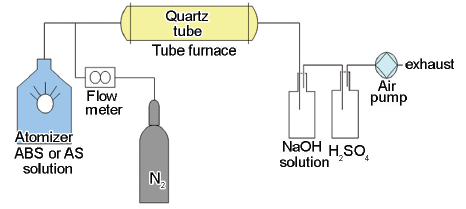 在如图1所示的实验装置上开展高温腐蚀实验。利用SK3-2-10-4型节能程控管式炉控制温度,实验前利用热电偶定点测试管式炉内石英管反应器相应位置的温度,选择的实验温度在108~282 ℃范围内。将腐蚀试片平放入石英管内已准确测定温度的位置处,然后喷入包含N2和雾化的ABS溶液或AS溶液。由于实际气相中ABS含量并不确定,考虑实验时间和研究目的等,配制的ABS或AS溶液浓度为5.3571和10.7142 g/L (分别用分析纯NH4HSO4和 (NH4)2SO4配制)。利用HQ-2008A6工业喷雾器对ABS或AS溶液超声波雾化后,喷入石英管反应器内,喷入的流量准确控制在5.6 mL/min。用N2作为载气,其流量准确控制在100 mL/min,最终使得气相中ABS或AS的浓度为300或600 mg/L。