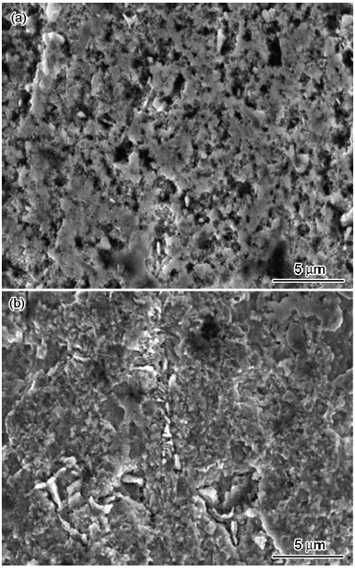 Fig.5 SEM images of 20# carbon steel after corrosion in 300 mg/L (a) and 600 mg/L (b) ABS at 208 ℃