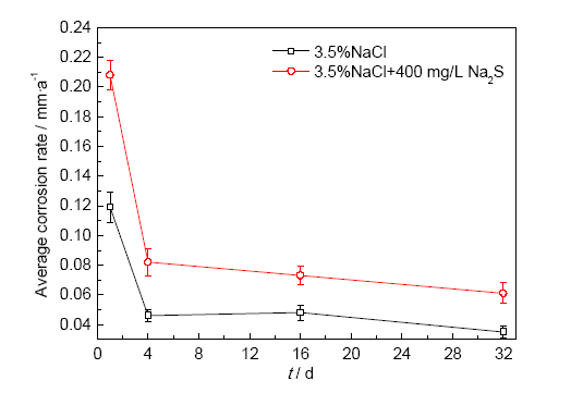 本实验中所用的两种溶液分别为:3.5%NaCl和400 mg/L Na2S+3.5%NaCl溶液。所用化学试剂均为分析纯级别。