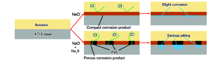 Fig.9 Effect of S2- on the corrosion process of A710 steel in 3.5%NaCl solution