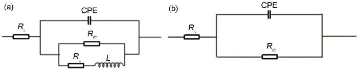 Equivalent circuit models for fitting EIS in Fig. 5a and c (a) and Fig.5b (b)
