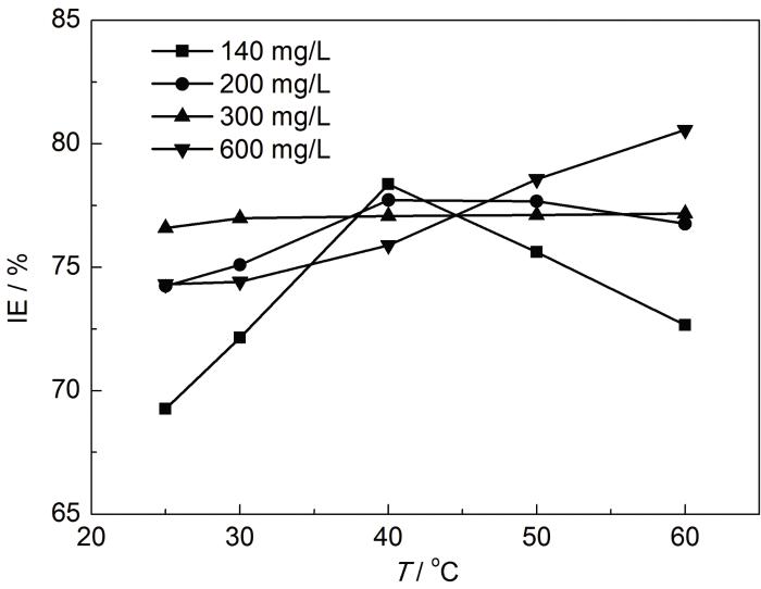 2.3 实验温度对缓蚀性能的影响