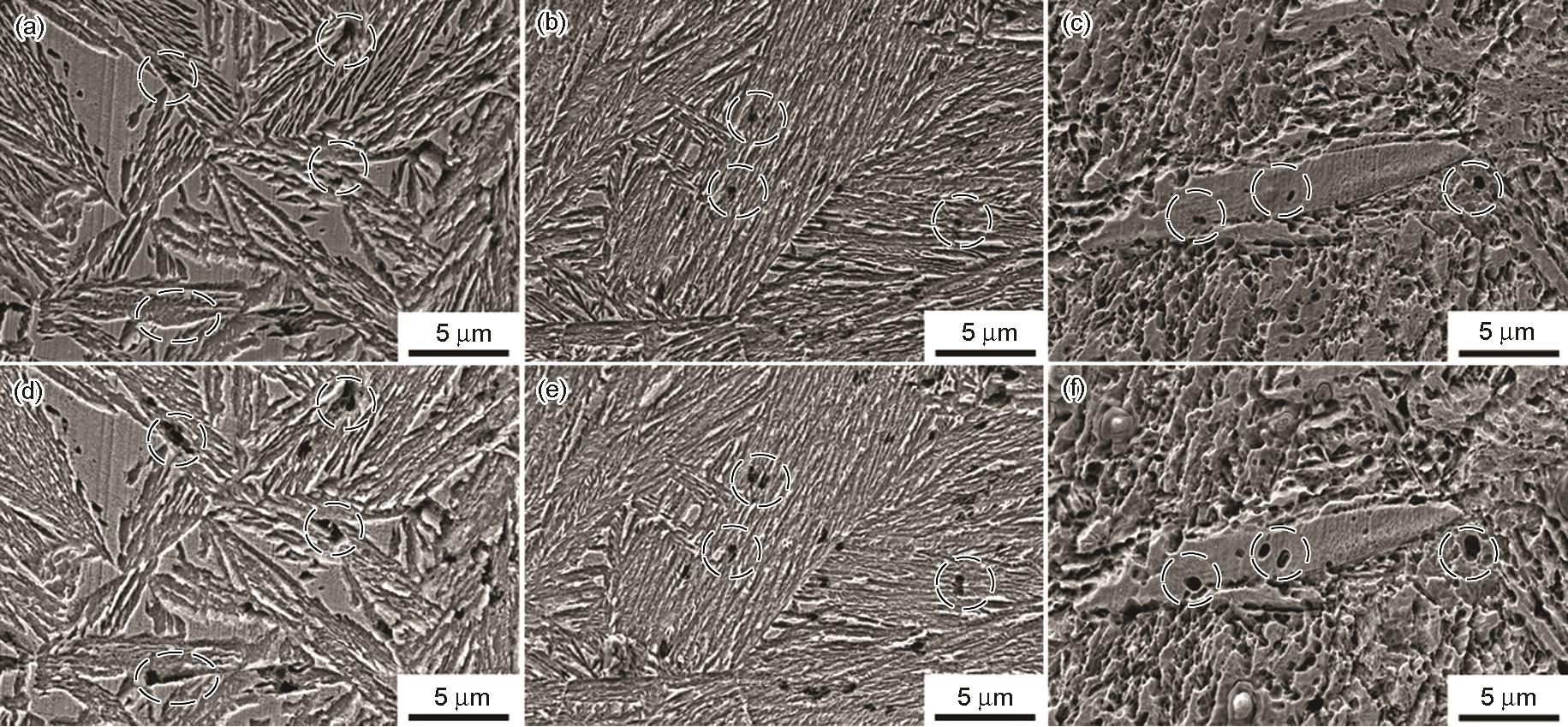 | 图3 腐蚀10和60 min后一步贝氏体钢、两步贝氏体钢和马氏体钢的原位形貌 |