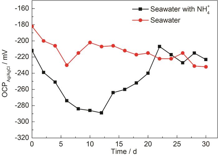 针对B10铜镍合金在天然海水中的腐蚀行为与机理有较为详细的研究,但对于NH4+污染对B10铜镍合金在海水环境下的腐蚀影响则还需要更深入的探讨。因此,本文研究了NH4+污染对B10铜镍合金在海水中的腐蚀影响,以期为B10铜镍合金在类似海水环境下的广泛应用和防腐蚀设计提供参考。