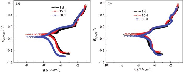 | Medium | Time / d | OCPAg/AgCl / V | ba / mV·dec-1 | Icorr / μA·cm-2 | Ecorr vs Ag/AgCl / V |