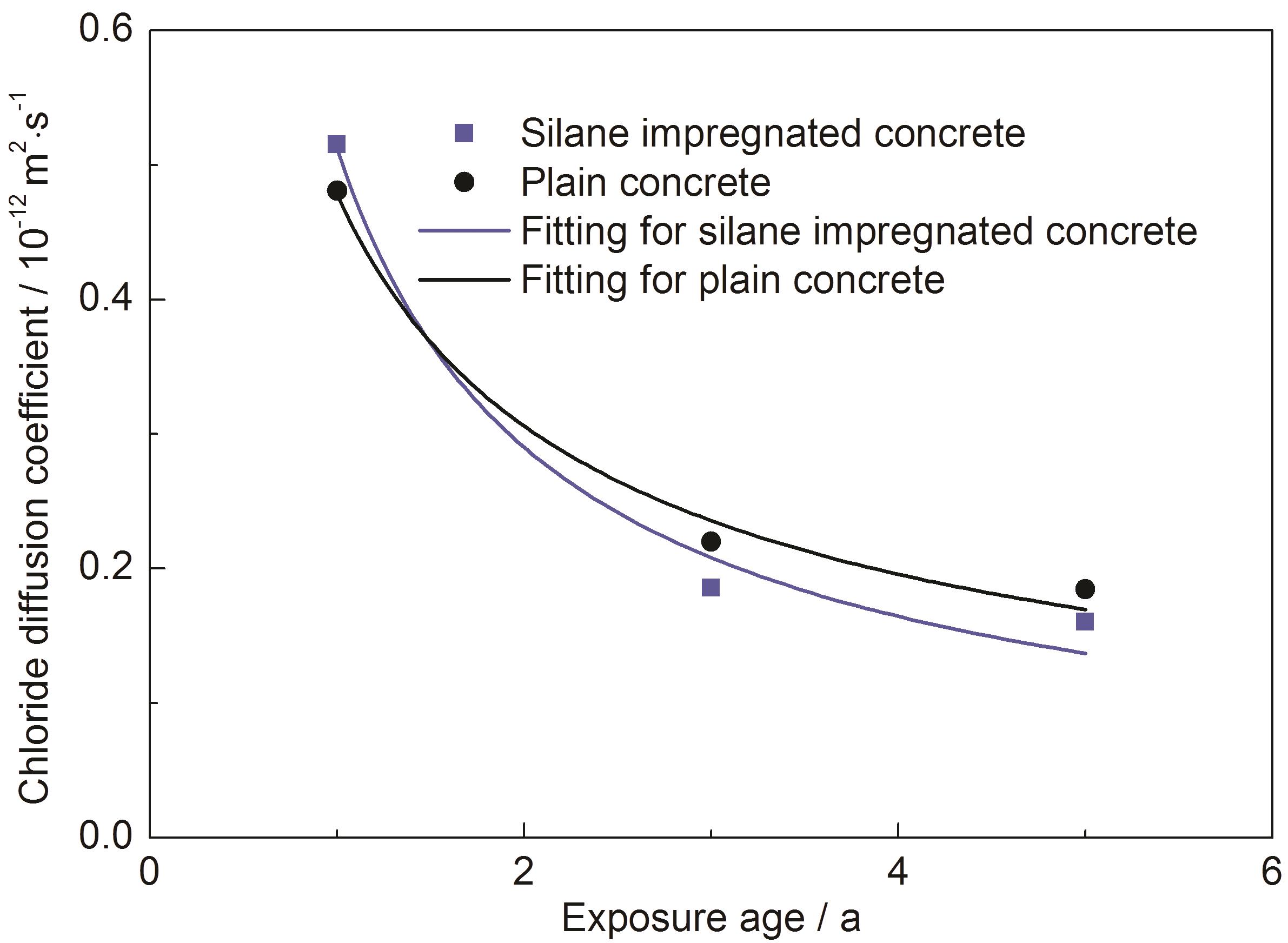 | 图5 Cl-扩散系数随暴露龄期的衰减曲线 |