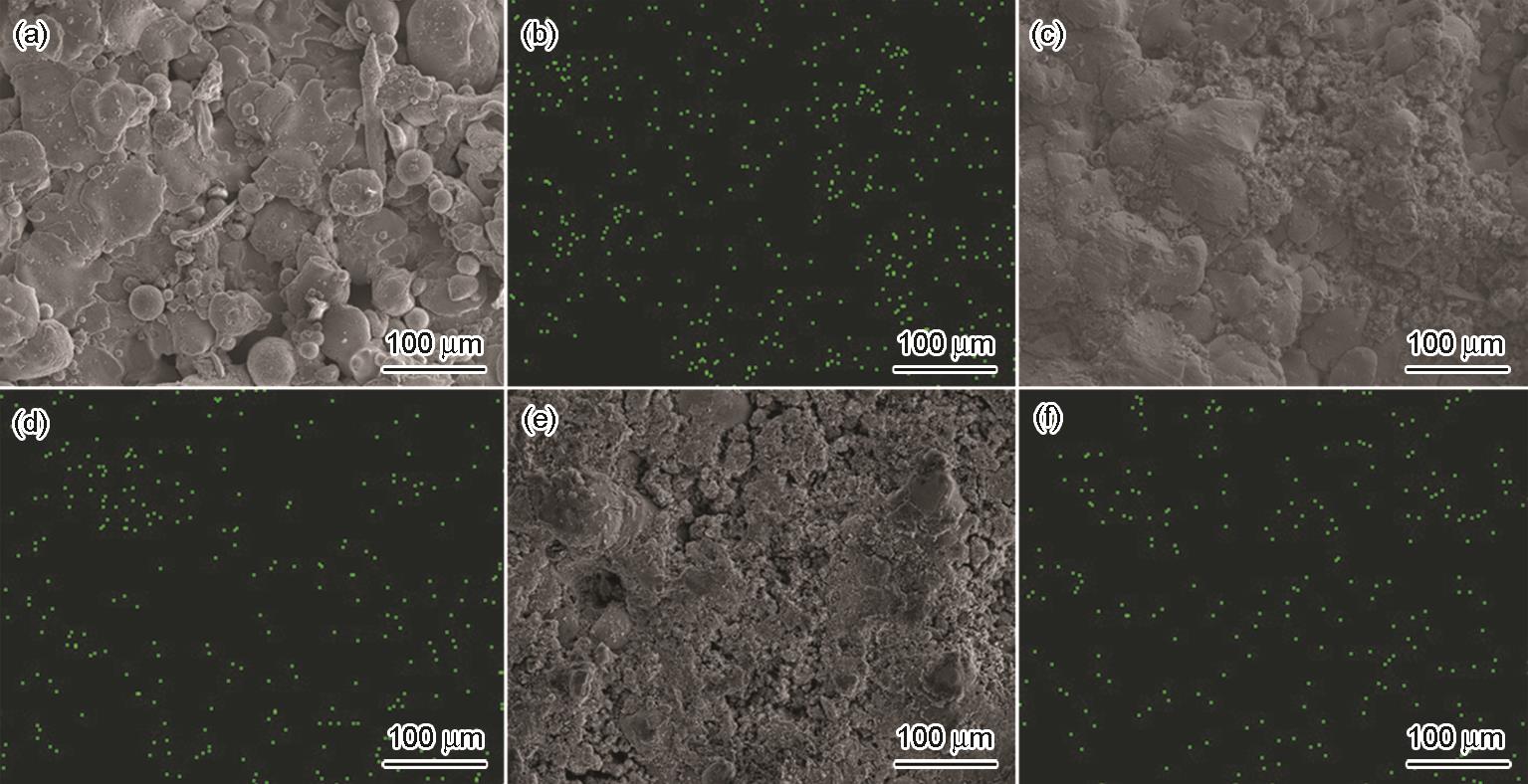 Fig.5 Micromorphologies of the unsoaked coating (a), 216 h (c) and 720 h (e) immersed coating, and Cr element distribution diagram of the unsoaked (b), 216 (d) and 720 h (f) immersed coating |