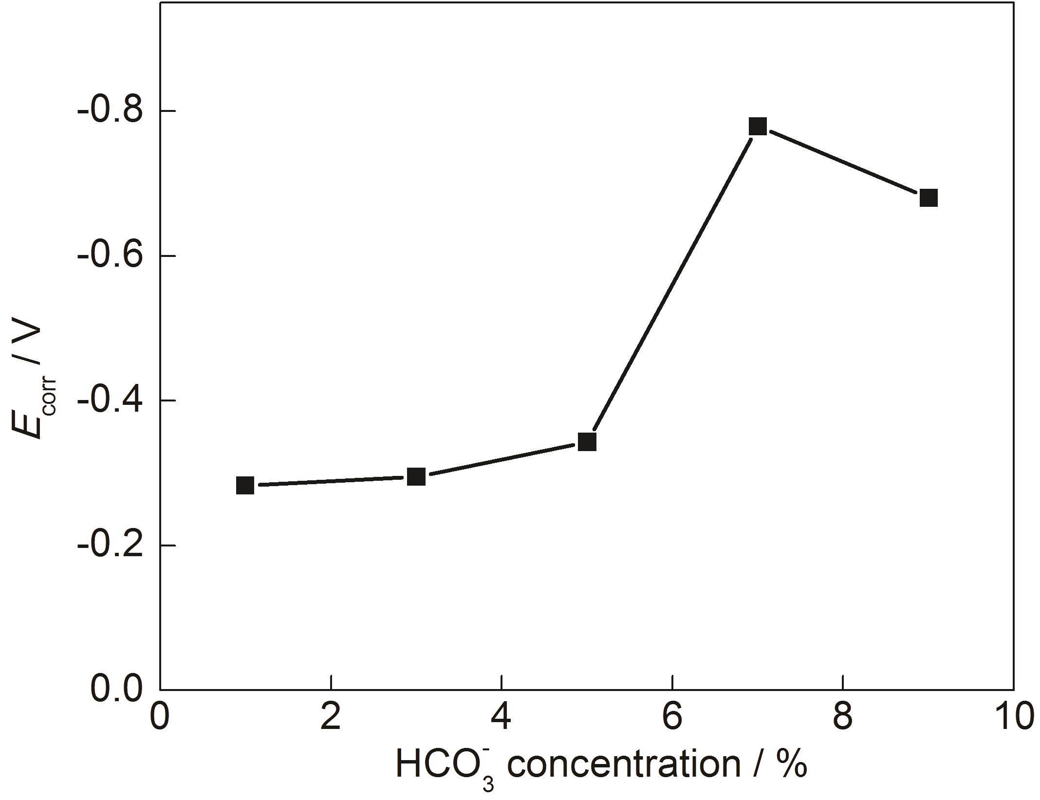 图2 X90管线钢HCO3-浓度与腐蚀电位Ecoor的关系曲线 |