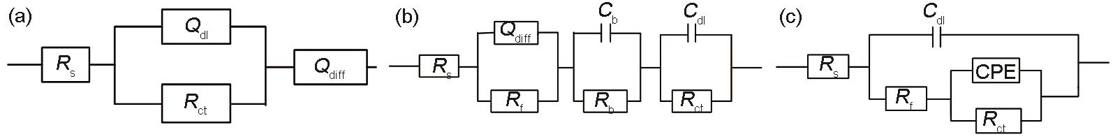 Fig.10 Equivalent circuit models of EIS of 5083Al-alloy and 30CrMnSiA steel (a) Initial stage for 5083 Al-alloy, (b) final stage for 5083 Al-alloy, (c) for 30CrMnSiA steel |