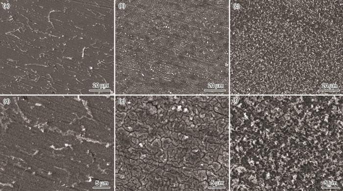 Surface morphologies of Incoloy800 alloy (a, d), Incoloy825 alloy (b, e) and Incoloy625 alloy (c, f) after exposure to subcritical water with sulfide of 5000 mg/L at 25 MPa, 350 ℃ for 80 h