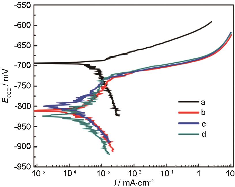 | 图6 不同状态Al-Mn-0.18RE合金在3.5%NaCl溶液中的极化曲线 |
