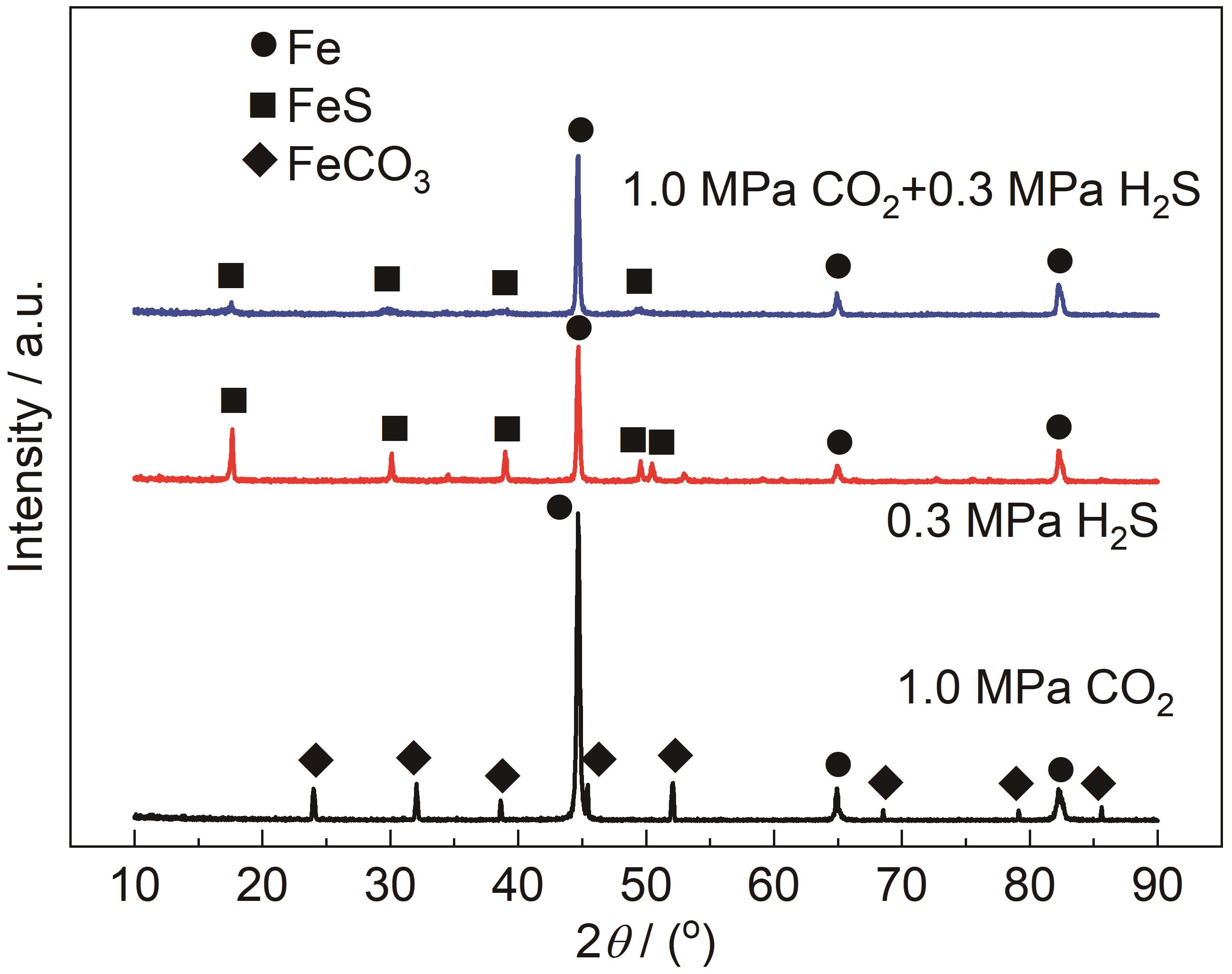 | 图3 在3种模拟环境中J55钢的腐蚀产物XRD图谱 |