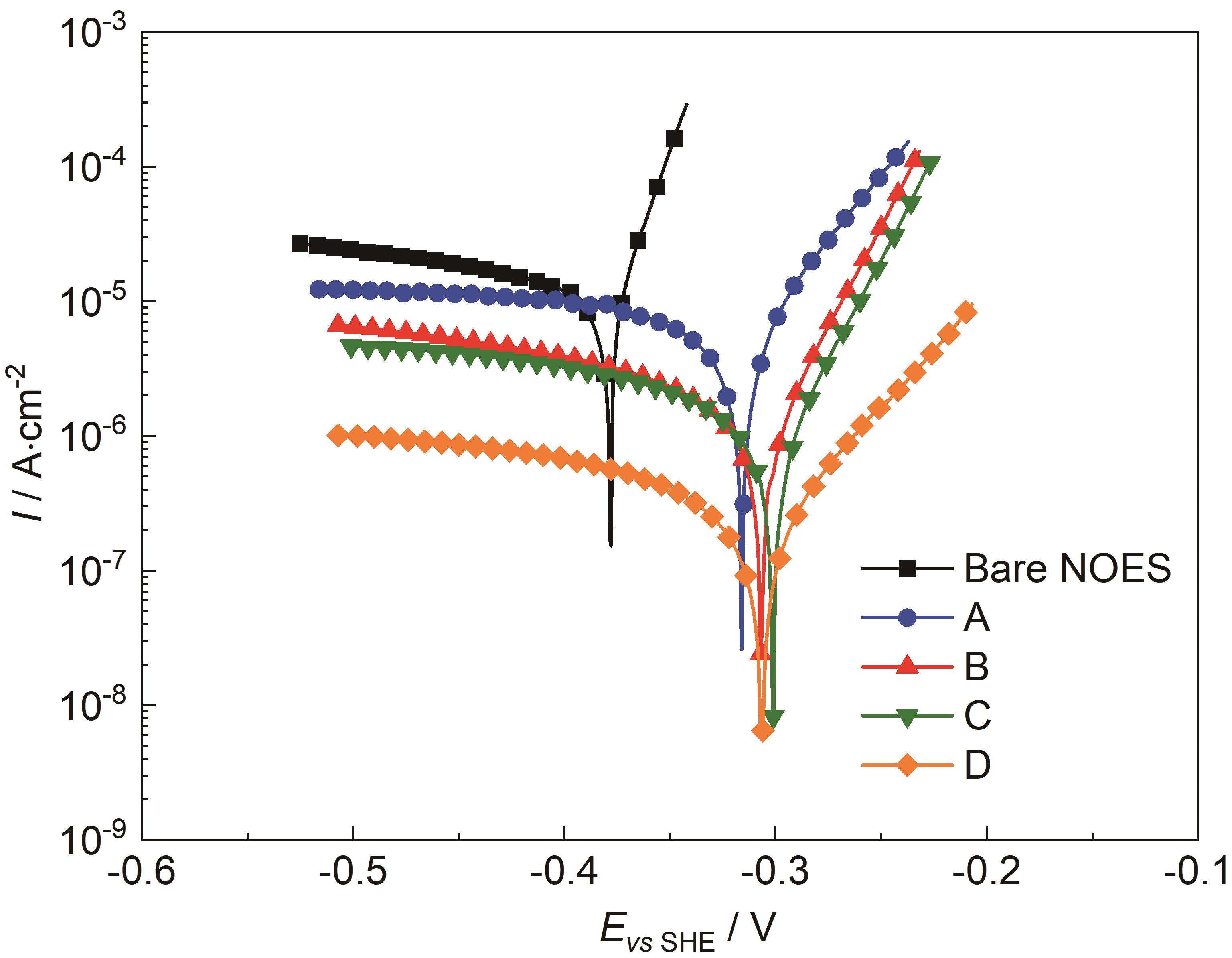 | 图5 4种涂层样品和裸钢的动电位极化曲线图 |