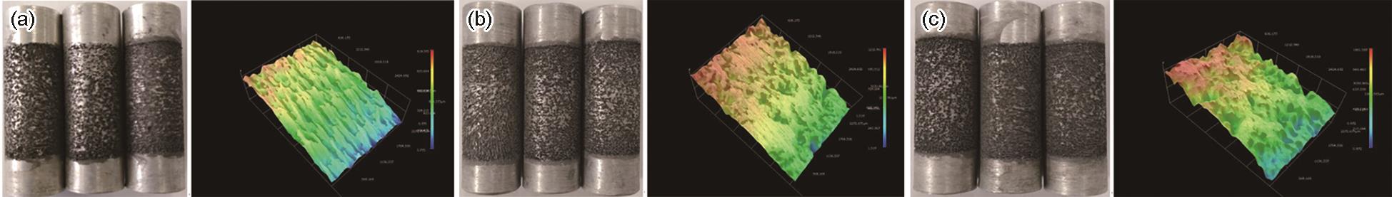 | Fig.2 Al-Zn-Ga-Si-Sb sacrificial anode dissolution morphology and microscopic morphology in the alternating deep and shallow environment: (a) Al-Zn-Ga-Si-0.1Sb, (b) Al-Zn-Ga-Si-0.5Sb, (c) Al-Zn -Ga-Si-1Sb |