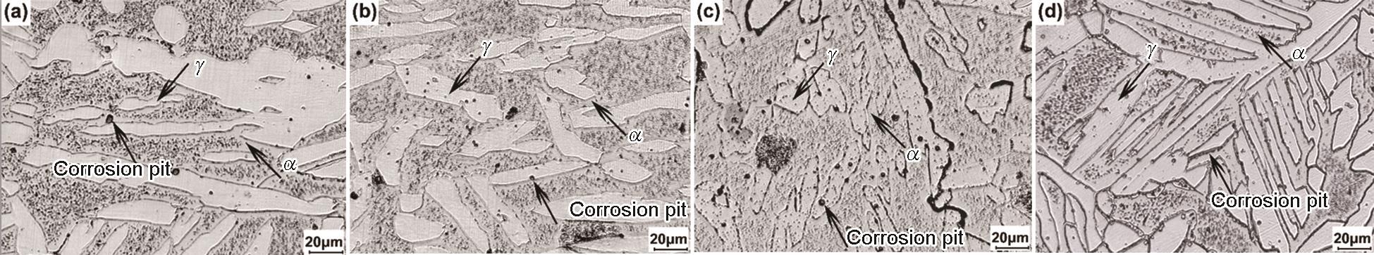 | Fig.5 Microstructures of the samples sensitized at 800 ℃ for 0.5 h (a), 1 h (b), 2 h (c) and 4 h (d) after pitting |