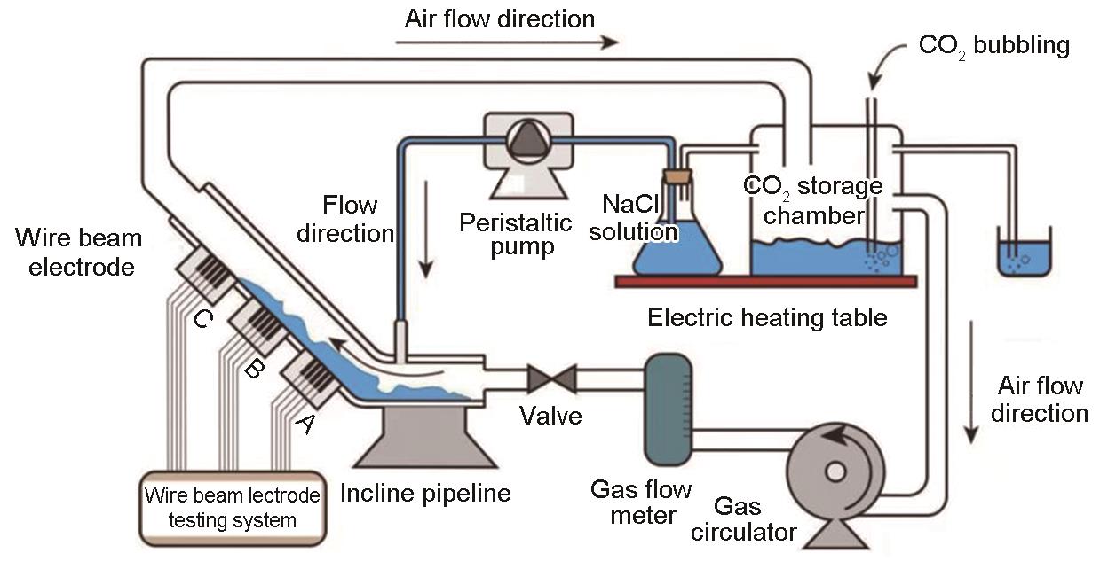 | Fig.1 Schematic diagram of CO2 local corrosion test device in the simulated water accumulation area |