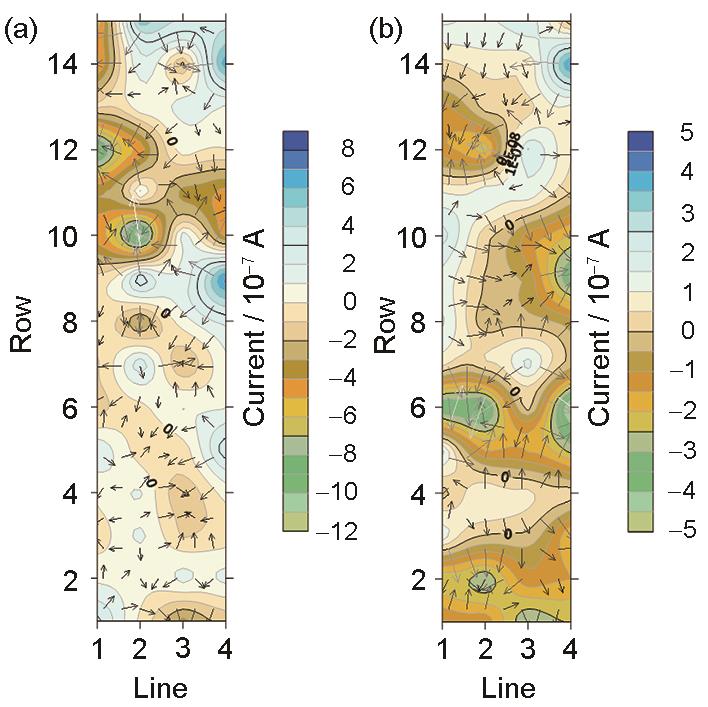 | Fig.5 Test results of coupling current at different gas flow rates: (a) 4 m/s, (b) 6 m/s |