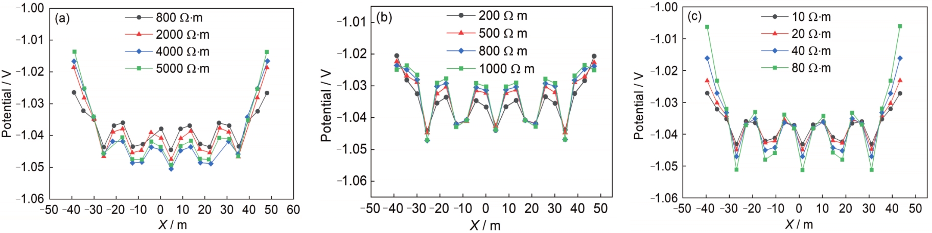 | 图9 不同罐底介质的电阻率变化对保护电位的影响[ |