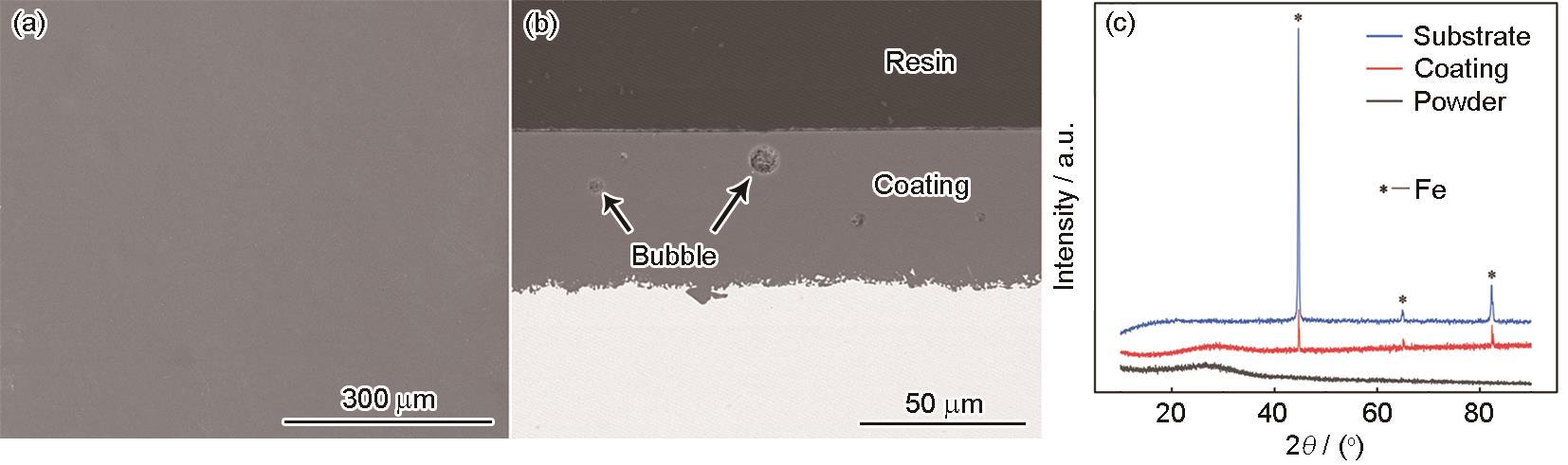 | 图1 制备态搪瓷涂层的表面和截面形貌以及XRD谱 |