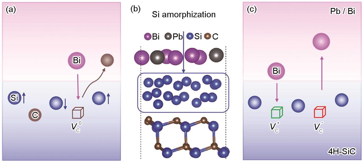 | Fig.1 Schematic illustrations of dissolution corrosion of 4H-SiC in touch with liquid Pb/Bi[ |