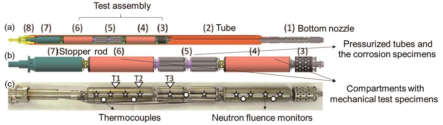 | 图4 LBE样品辐照装置,测试组件及辐照装置实体图[ |