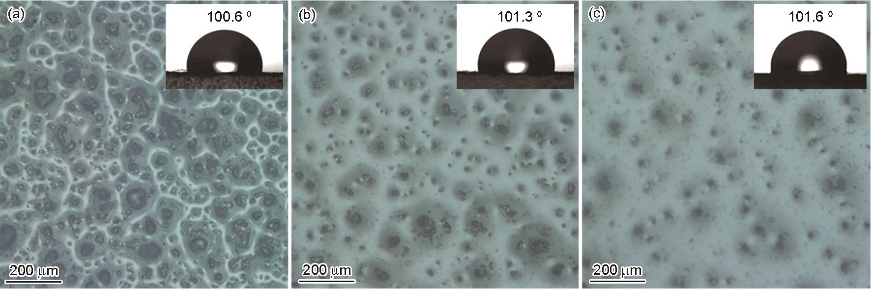 | 图4 不同超滑涂层表面光学图像及静态接触角 |