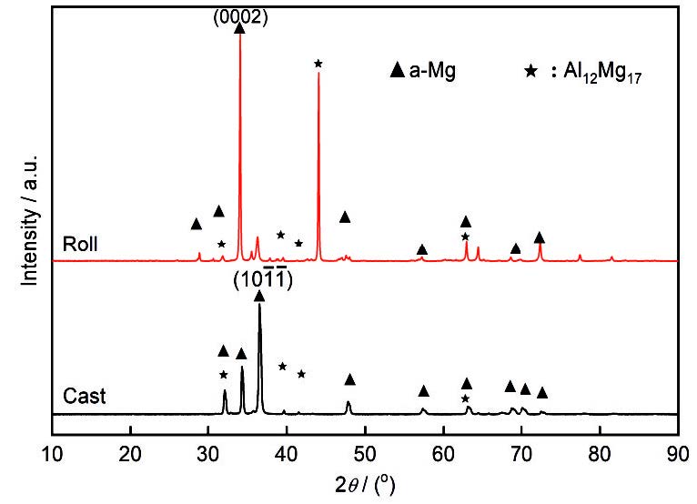 XRD pattern of the cast and rolled ZM5 Mg-alloy
