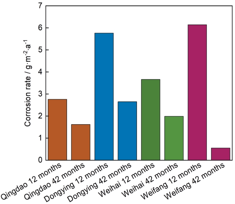 图2 山东典型环境下自然暴晒试样腐蚀速率 |