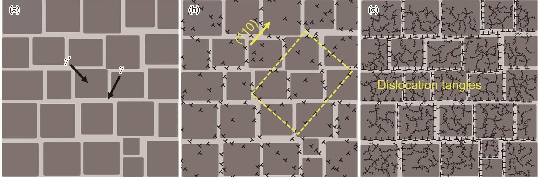 Fig.9 Evolutions of dislocations in nickel-based single crystal superalloy after LSP treatments: (a)UT, (b) LSP-1, (c) LSP-3 |
