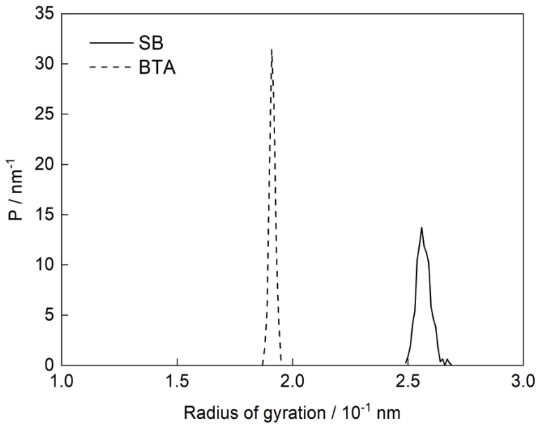 图6 BTA与SB分子的回转半径 |