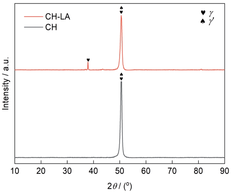 Fig.4 XRD patterns of CH and CH-LA alloy samples |