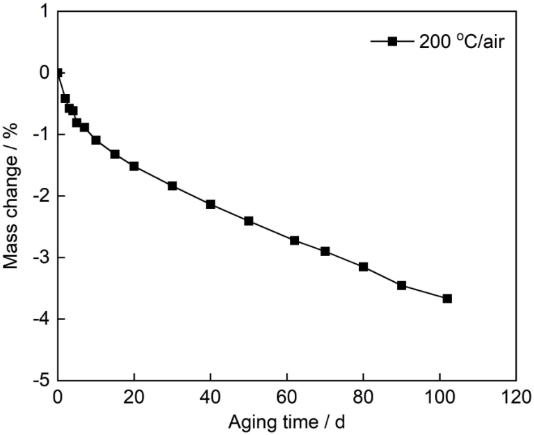 | Fig.12 Mass change rates of typical fluoroelastomer FX-17 during hot air aging at 200 oC |